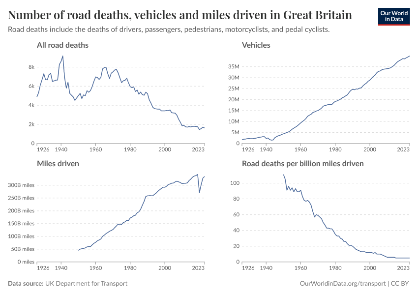 Hannah Ritchie (2025) - “How Britain built some of the world’s safest roads” Published online at OurWorldinData.org. Retrieved from: 'https://ai-search-suggested-topics-k.owid.pages.dev/britain-safest-roads-history' [Online Resource]BibTeX citation