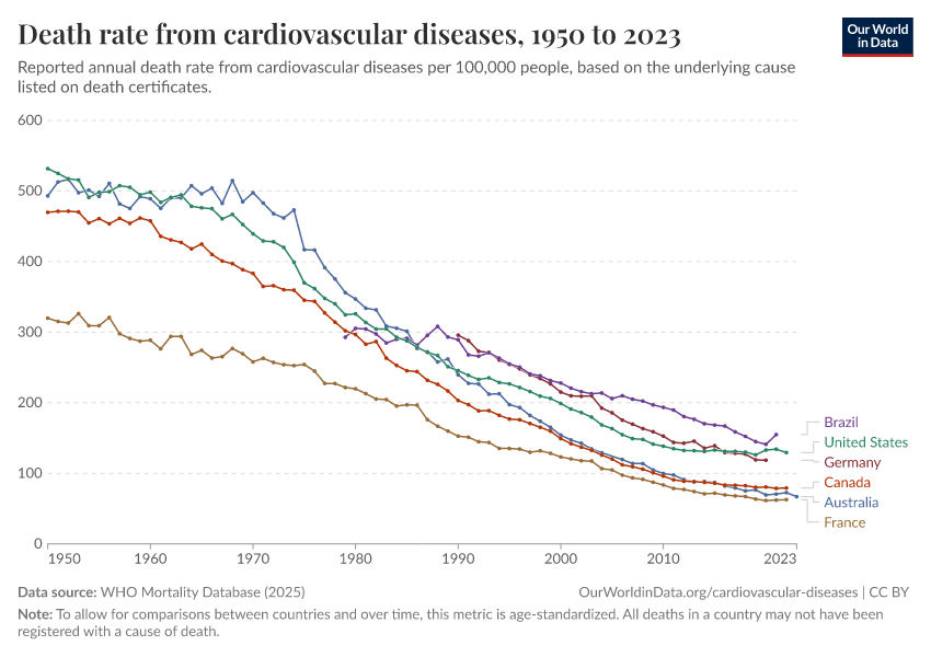 Saloni Dattani (2025) - “Death rates from cardiovascular disease have fallen dramatically — what were the breakthroughs behind this?” Published online at OurWorldinData.org. Retrieved from: 'https://ai-search-suggested-topics-k.owid.pages.dev/cardiovascular-deaths-decline' [Online Resource]BibTeX citation