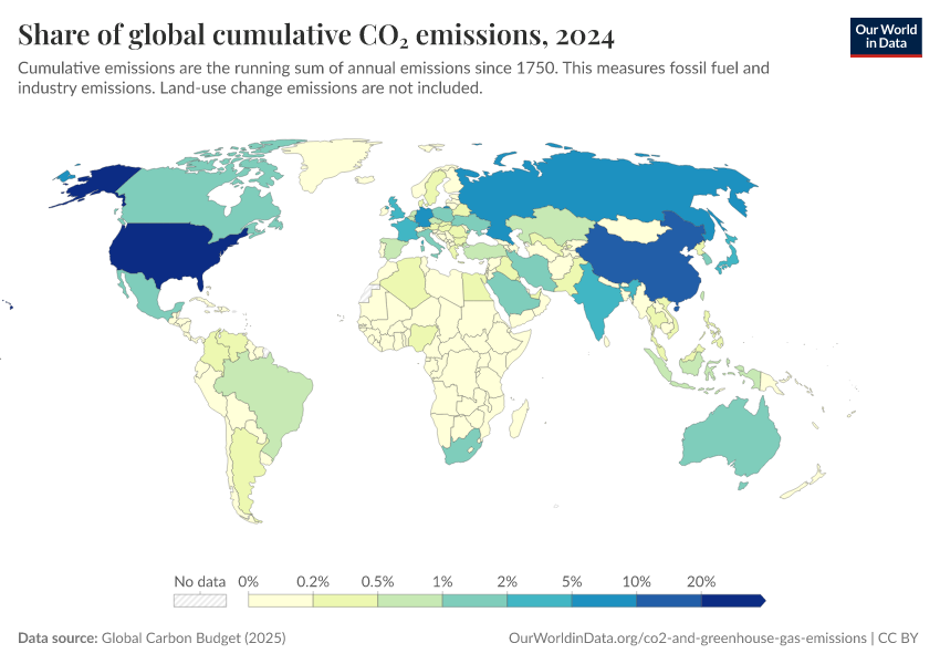 In the chart, you can see each country’s historical contributions to CO2 emissions.