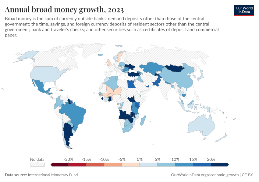 “Data Page: Annual broad money growth”. Our World in Data (2026). Data adapted from International Monetary Fund. Retrieved from https://ai-search-suggested-topics-k.owid.pages.dev/grapher/annual-broad-money-growth [online resource]How to cite this data