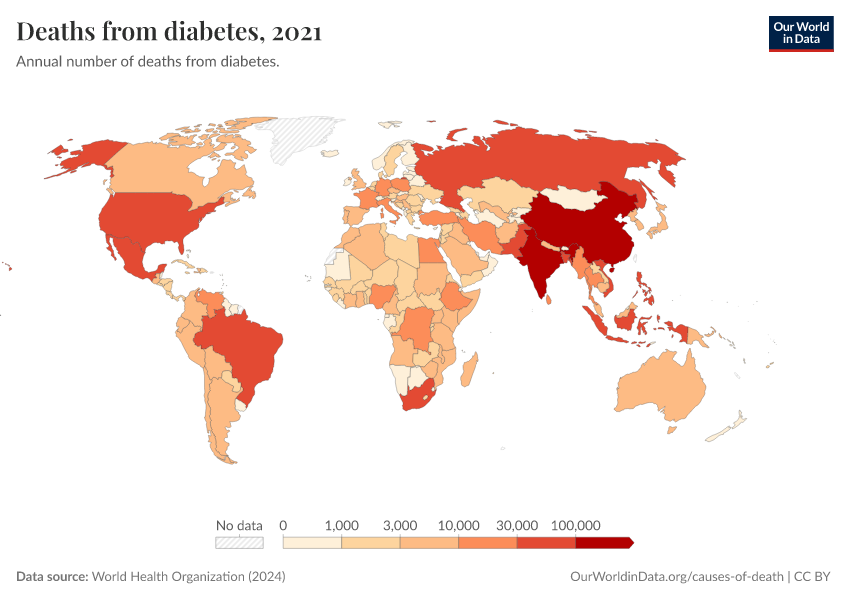 “Data Page: Deaths from diabetes”, part of the following publication: Esteban Ortiz-Ospina and Max Roser (2016) - “Global Health”. Data adapted from World Health Organization. Retrieved from https://ai-search-suggested-topics-k.owid.pages.dev/grapher/deaths-from-diabetes-ghe [online resource]How to cite this data