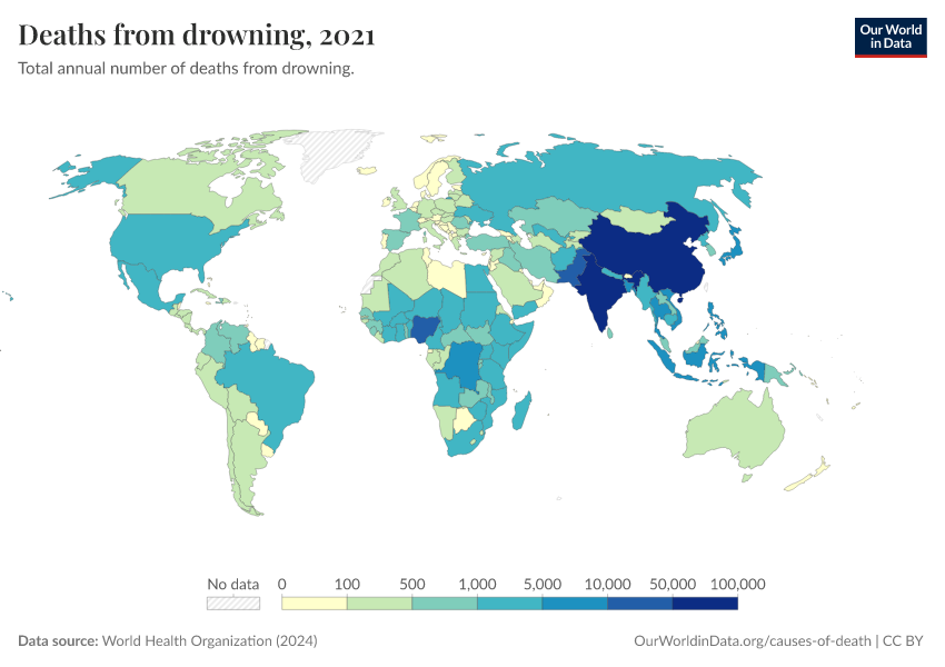 “Data Page: Deaths from drowning”, part of the following publication: Esteban Ortiz-Ospina and Max Roser (2016) - “Global Health”. Data adapted from World Health Organization. Retrieved from https://ai-search-suggested-topics-k.owid.pages.dev/grapher/deaths-from-drowning-ghe [online resource]How to cite this data