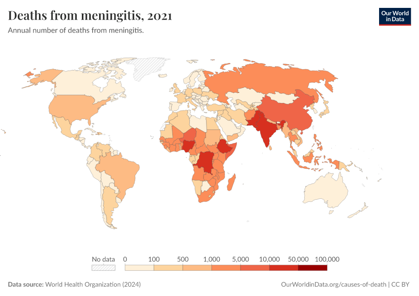 “Data Page: Deaths from meningitis”, part of the following publication: Esteban Ortiz-Ospina and Max Roser (2016) - “Global Health”. Data adapted from World Health Organization. Retrieved from https://ai-search-suggested-topics-k.owid.pages.dev/grapher/deaths-from-meningitis-ghe [online resource]How to cite this data