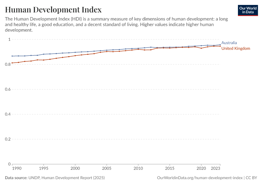“Data Page: Human Development Index”. Our World in Data (2026). Data adapted from UNDP, Human Development Report. Retrieved from https://ai-search-suggested-topics-k.owid.pages.dev/grapher/human-development-index [online resource]