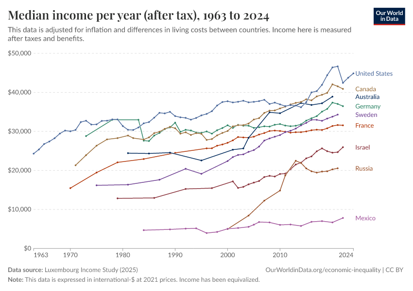“Data Page: Median income per year (after tax)”, part of the following publication: Joe Hasell, Bertha Rohenkohl, Pablo Arriagada, Esteban Ortiz-Ospina, and Max Roser (2022) - “Poverty”. Data adapted from Luxembourg Income Study. Retrieved from https://ai-search-suggested-topics-k.owid.pages.dev/grapher/median-income-after-tax-lis [online resource]How to cite this data
