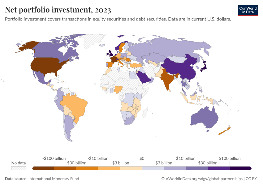 International Monetary Fund – processed by Our World in Data. “Net portfolio investment” [dataset]. International Monetary Fund, “International Monetary Fund, Balance of Payments Statistics Yearbook and data files.” [original data]. Retrieved March 5, 2026 from https://ai-search-suggested-topics-k.owid.pages.dev/grapher/net-portfolio-investment