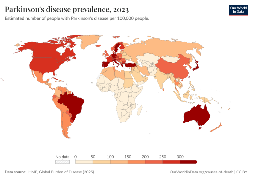 “Data Page: Parkinson's disease prevalence”, part of the following publication: Esteban Ortiz-Ospina and Max Roser (2016) - “Global Health”. Data adapted from IHME, Global Burden of Disease. Retrieved from https://ai-search-suggested-topics-k.owid.pages.dev/grapher/parkinsons-disease-prevalence-ihme [online resource]How to cite this data