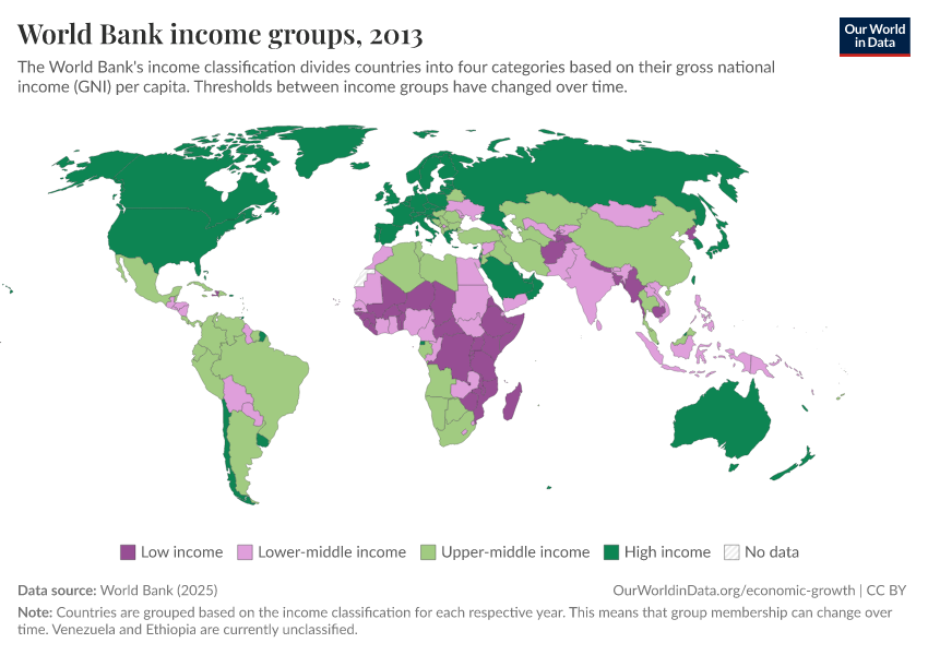 “Data Page: World Bank income groups”, part of the following publication: Max Roser, Bertha Rohenkohl, Pablo Arriagada, Joe Hasell, Hannah Ritchie, and Esteban Ortiz-Ospina (2023) - “Economic Growth”. Data adapted from World Bank. Retrieved from https://ai-search-suggested-topics-k.owid.pages.dev/grapher/world-bank-income-groups [online resource]How to cite this data