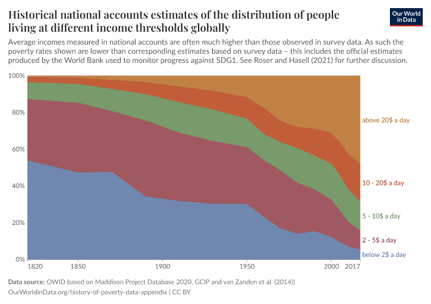Joe Hasell (2019) - “Data appendix – The fight against global poverty: 200 years of progress and still a very long way to go” Published online at OurWorldinData.org. Retrieved from: 'https://ai-search-suggested-topics-k.owid.pages.dev/history-of-poverty-data-appendix' [Online Resource]BibTeX citation