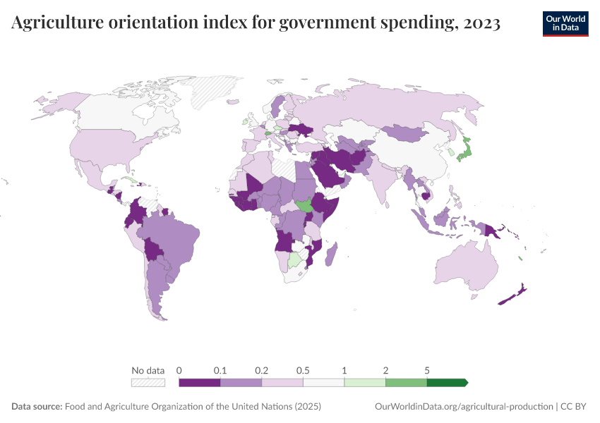 The agriculture orientation index (AOI) is the agriculture share of government expenditures, divided by the agriculture share of GDP.