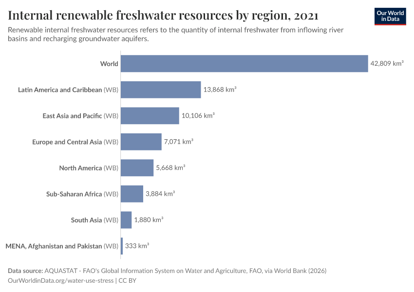 The chart shows the total internal renewable freshwater resources by region.